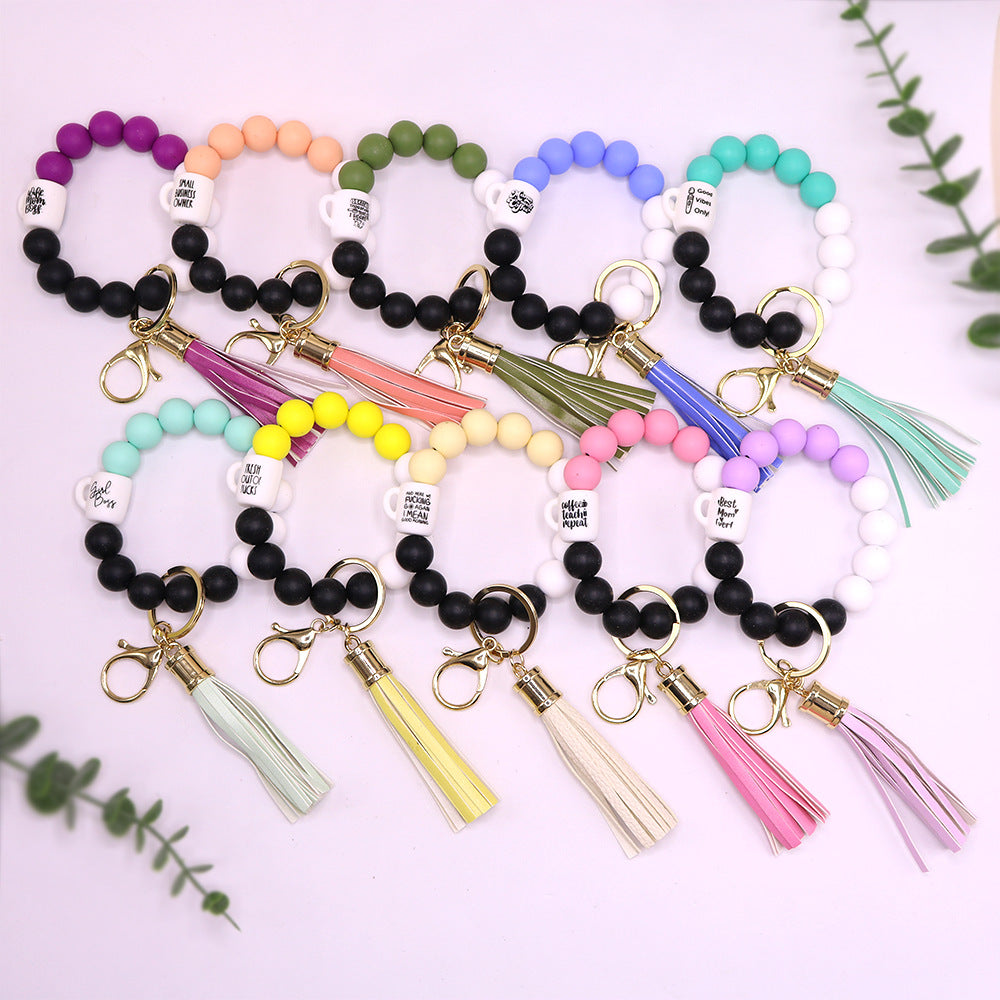 Wholesale MoM Coffee Cup Silicone Beaded Wrist Keychain