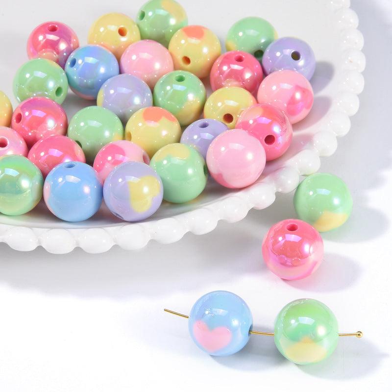 Wholesale 10pcs/pack Acrylic Color Plated Heart Beads Through Hole Round Beads