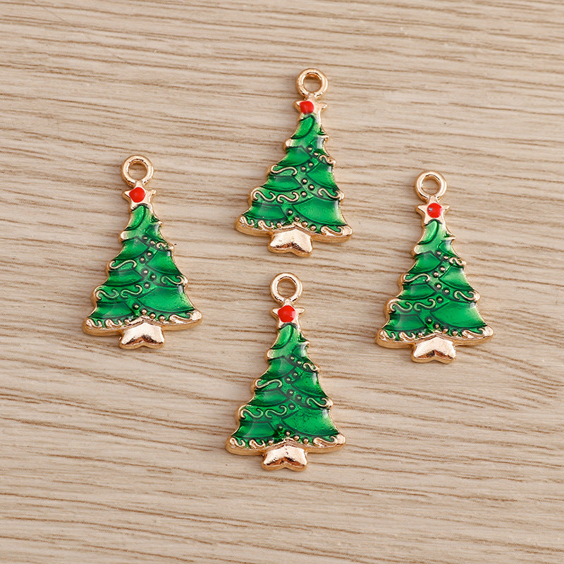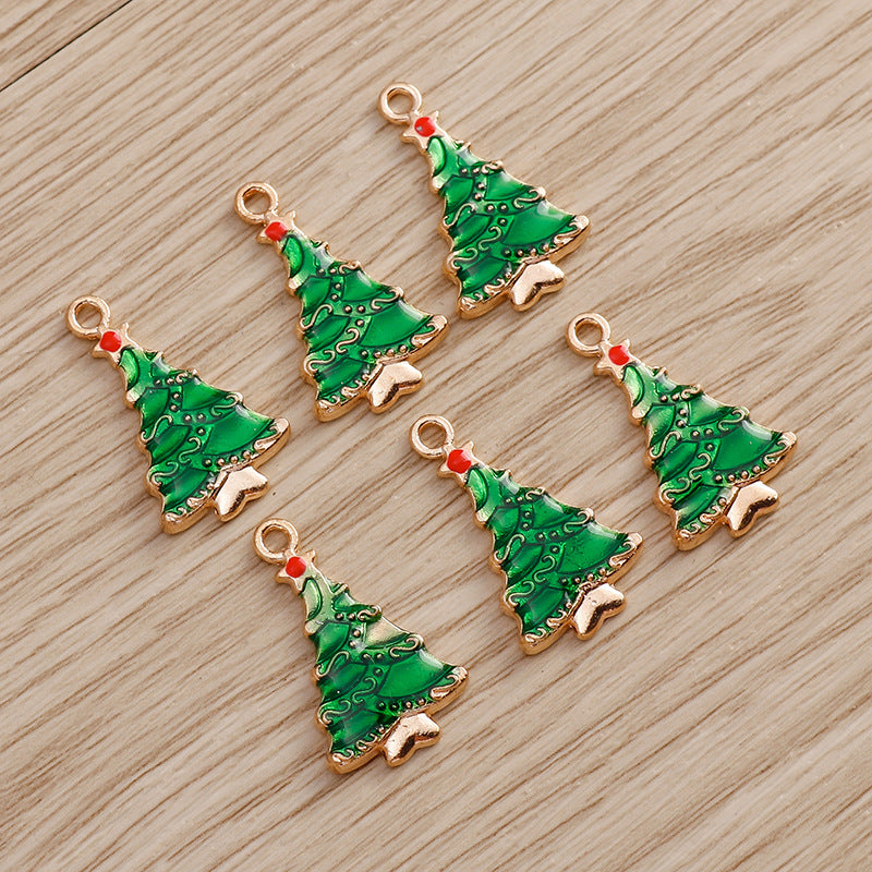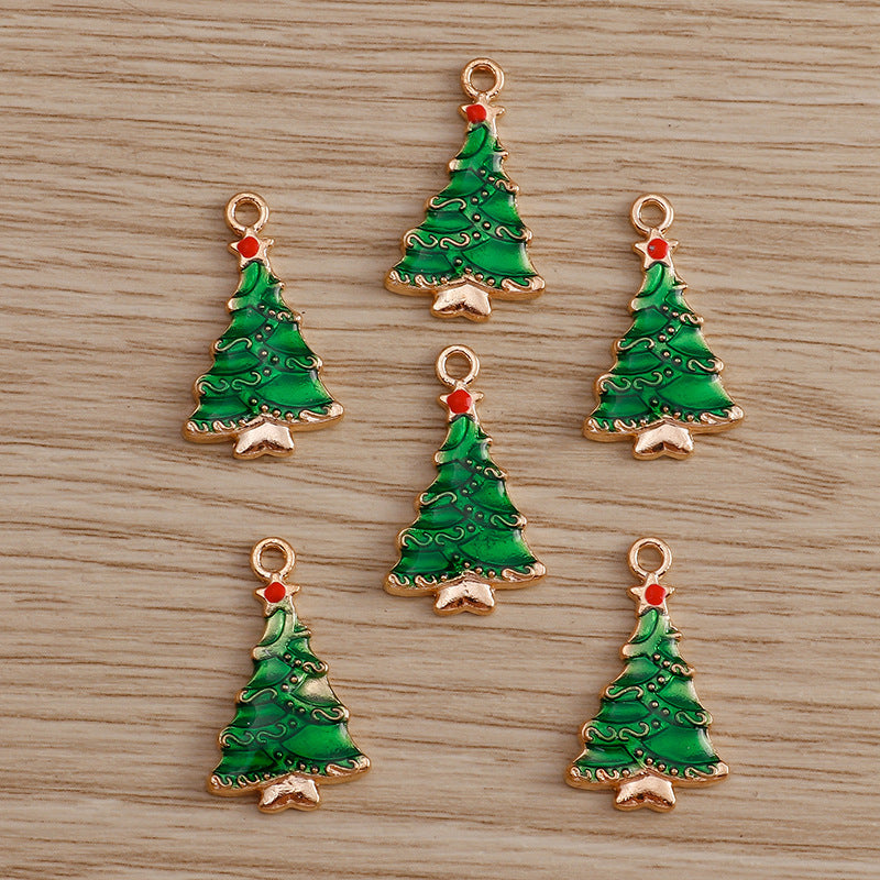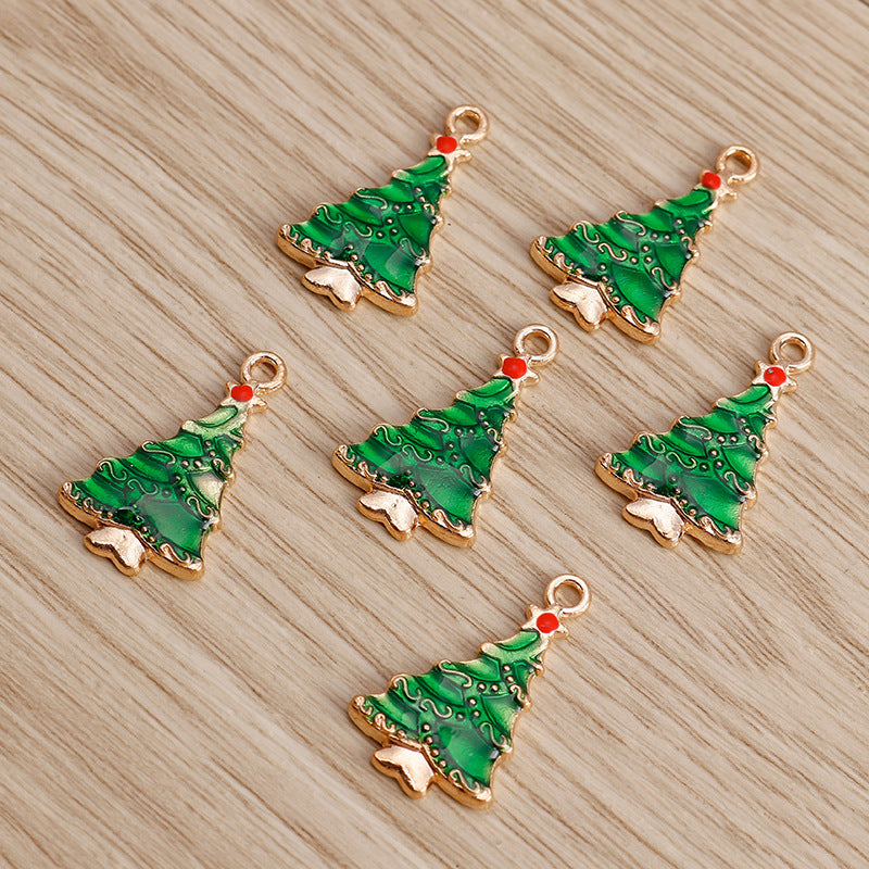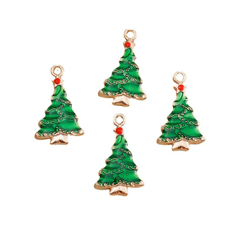 Wholesale 10PCS/pack Christmas Alloy Drip Oil Christmas Tree Keychain Accessories DIY Pendants