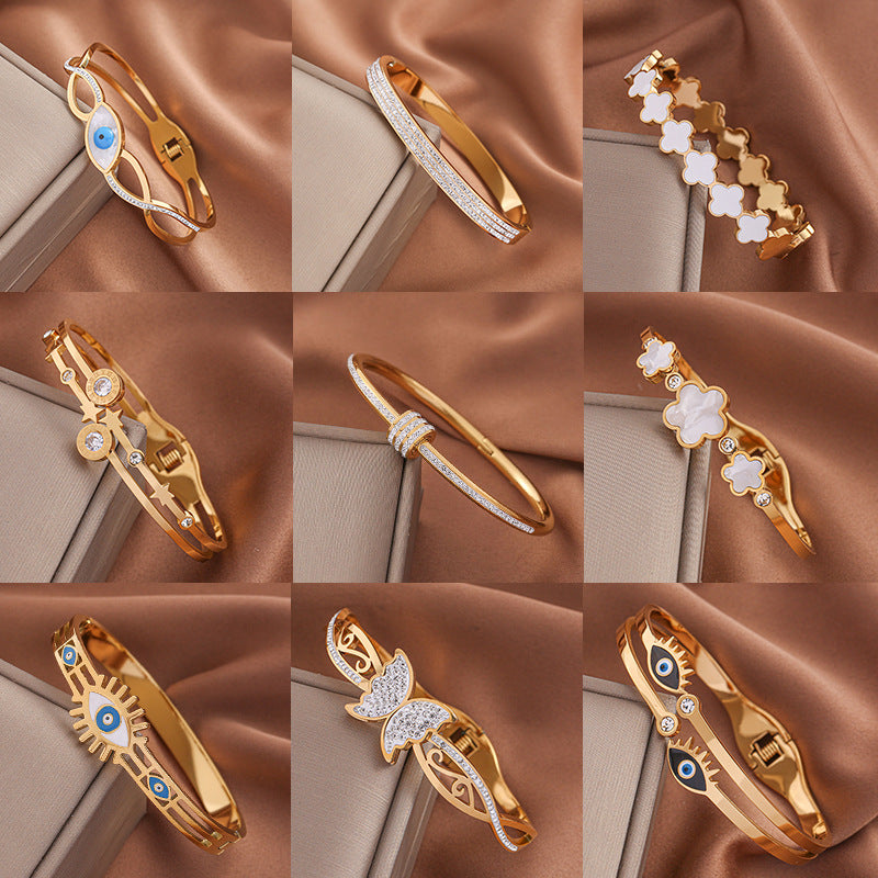 Wholesale Four Leaf Clover Love Gold Plated Titanium Steel Bracelet
