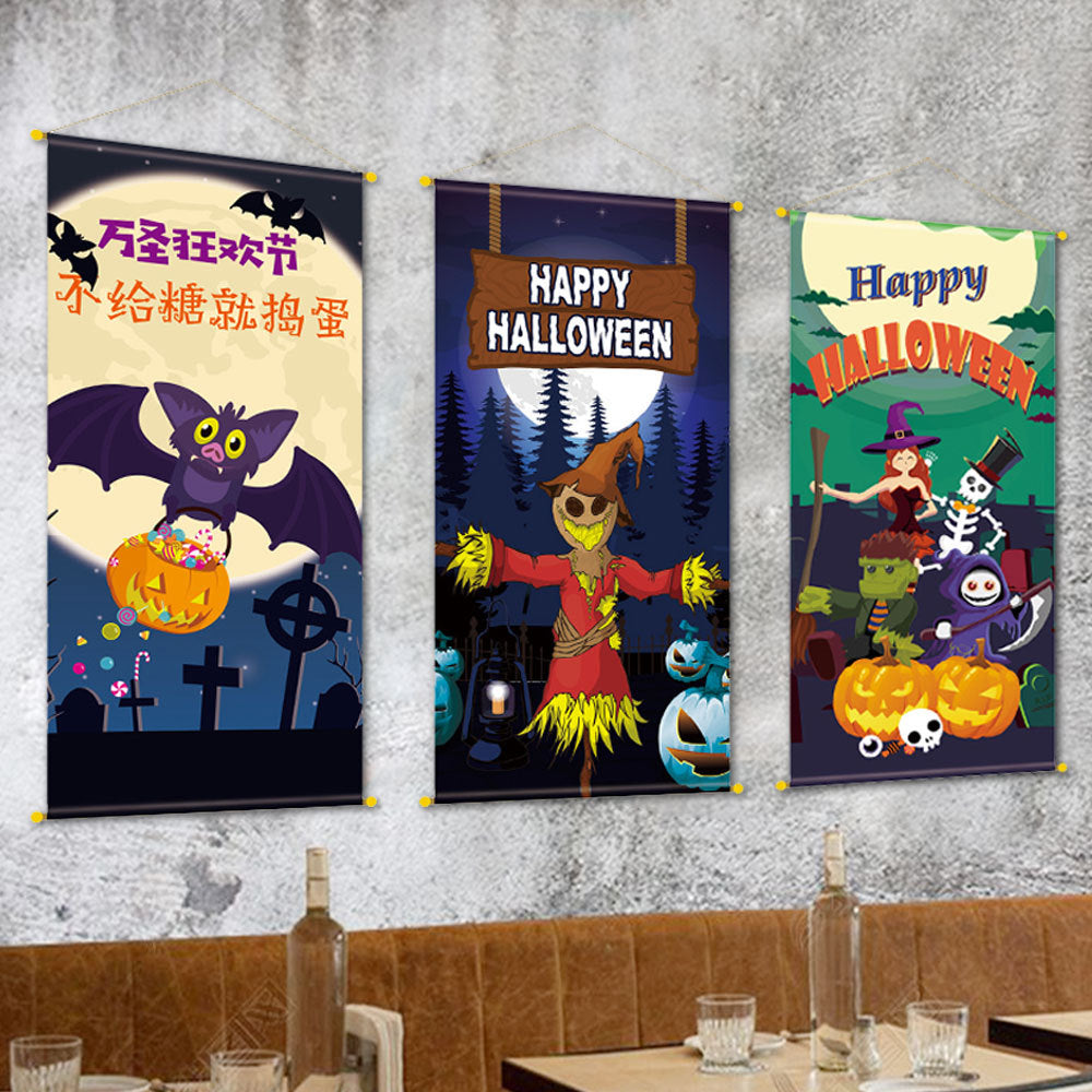Wholesale Halloween New Bar Restaurant Wall Cloth Poster Hanging Banner Decorative Pendant