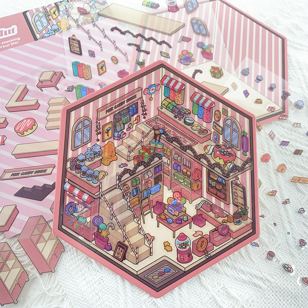 Wholesale Pink Candy House 3D Micro World DIY Sticker