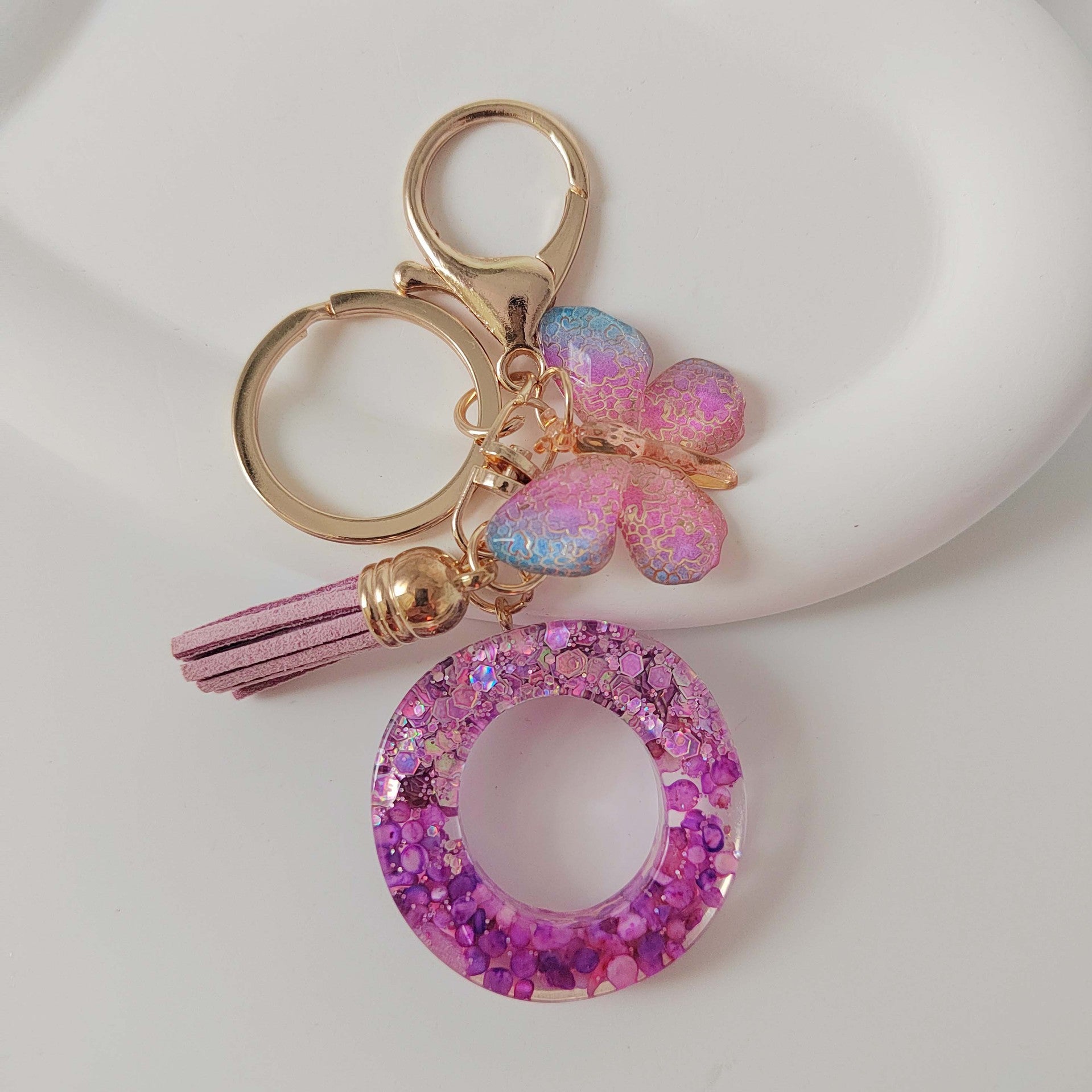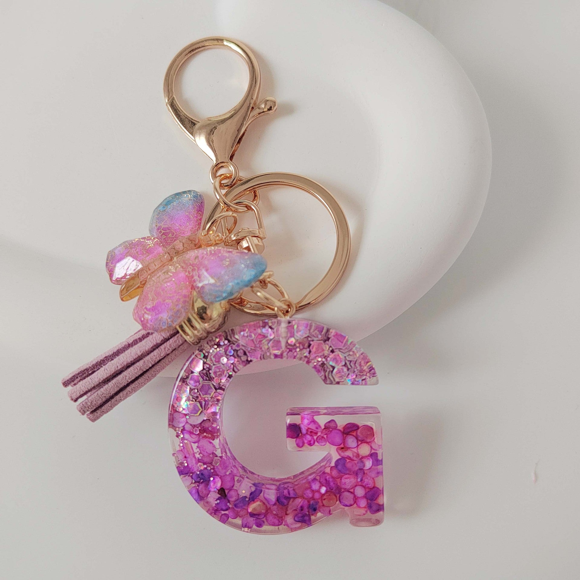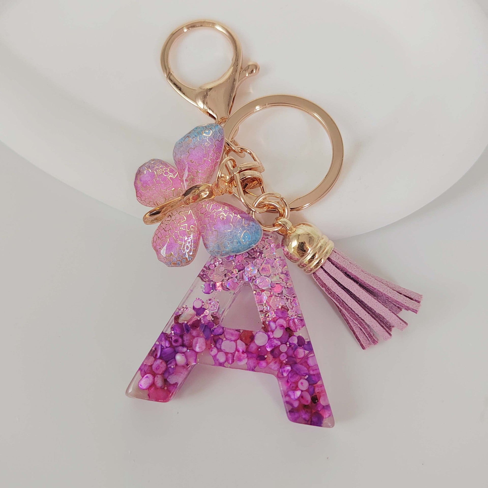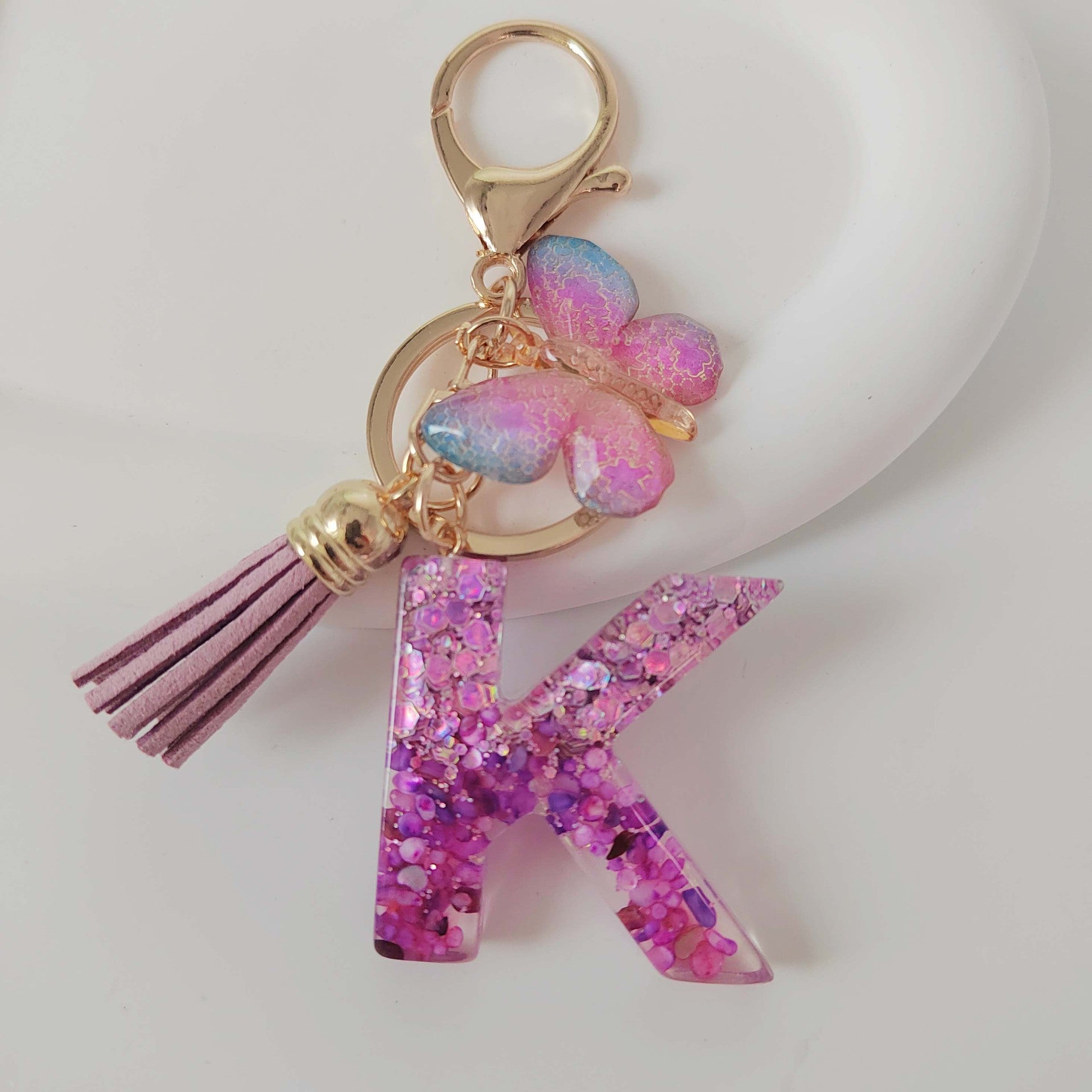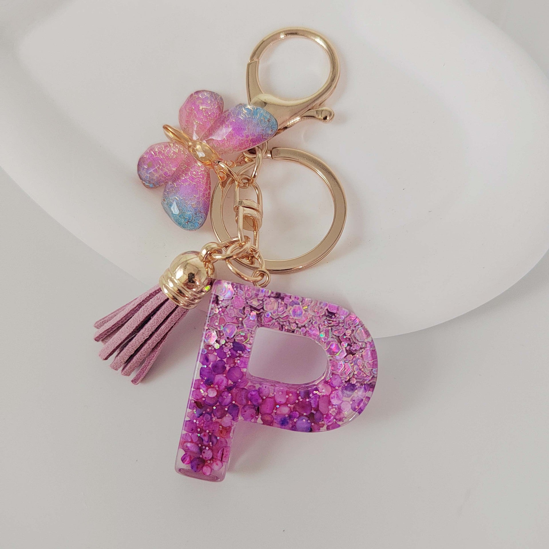 Wholesale Purple Illusion Color Double Glue Letter Glitter Tassel Keychain