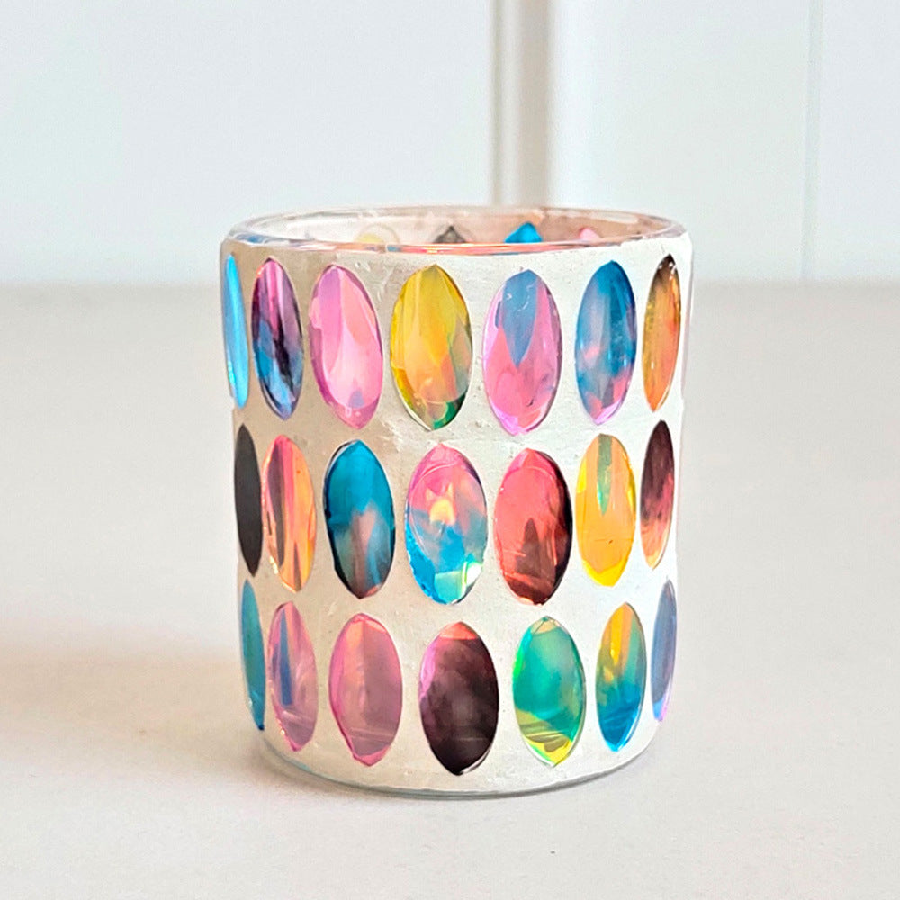 Wholesale Rainbow Disc Mosaic Glass Candle Holder 10PCS