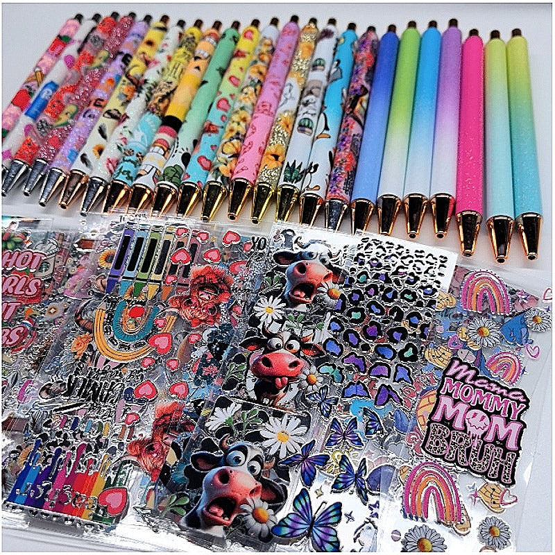 Wholesale Random Pen Stickers 20/50/100pcs UV DTF Wraps & Cartoon Random Styles Pen&Bookmark Stickers for Crafts Wraps