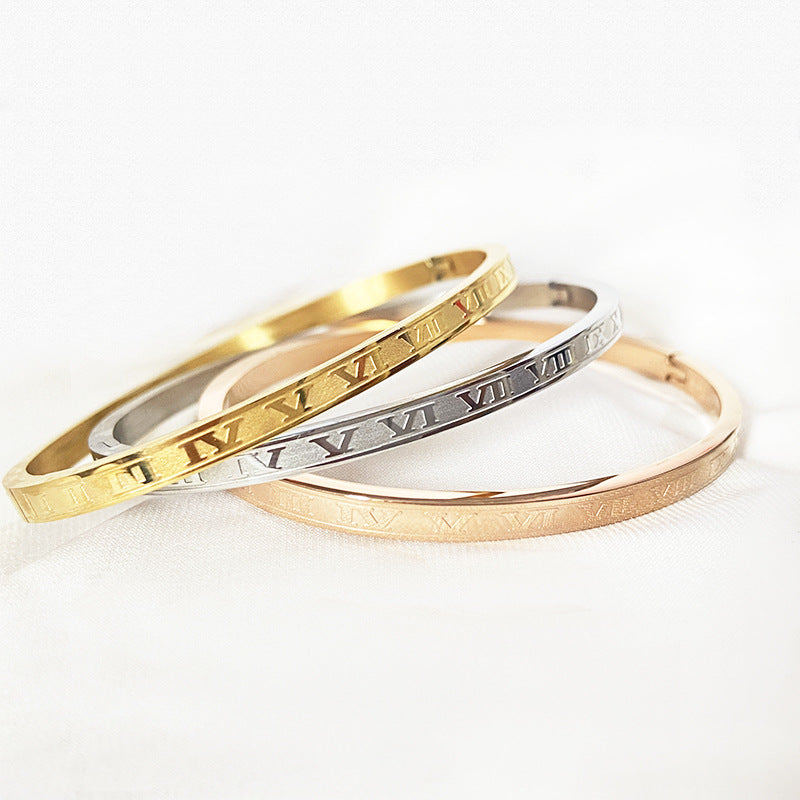 Wholesale Roman Numeral Open Titanium Steel Bracelet
