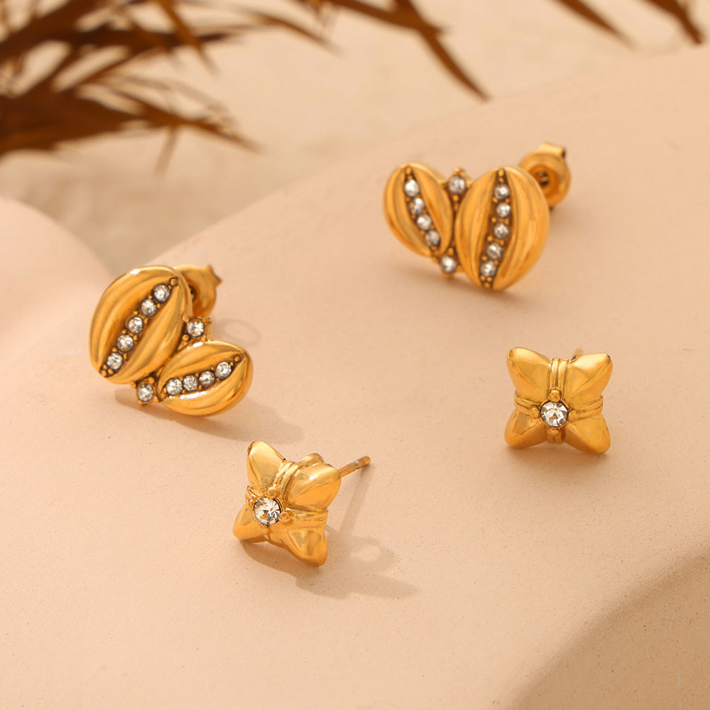 Wholesale Vintage Titanium Steel Gold Plated Geometric Flower Diamond Earrings