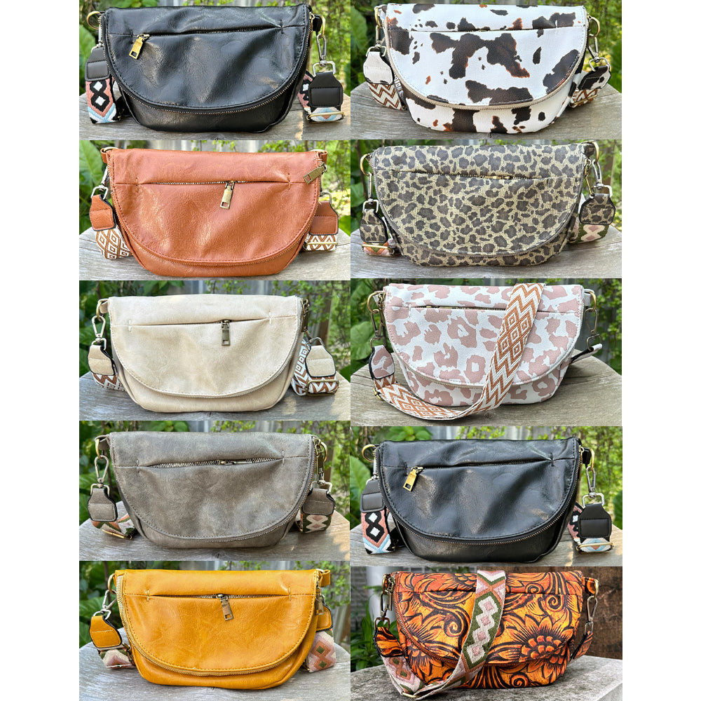 Wholesale Western Style Leopard Print Cow Print PU Folding Crossbody Bag Chest Bag