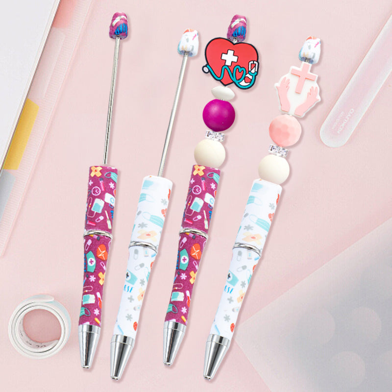 Wholesale Beadable Pen International Nurses Day Printed Plastic Pen DIY for Beaded