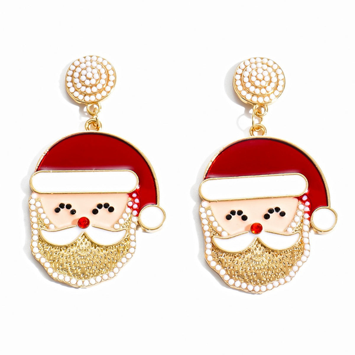 Wholesale Christmas Cartoon Santa Claus Alloy Drop Oil Pearl Earrings