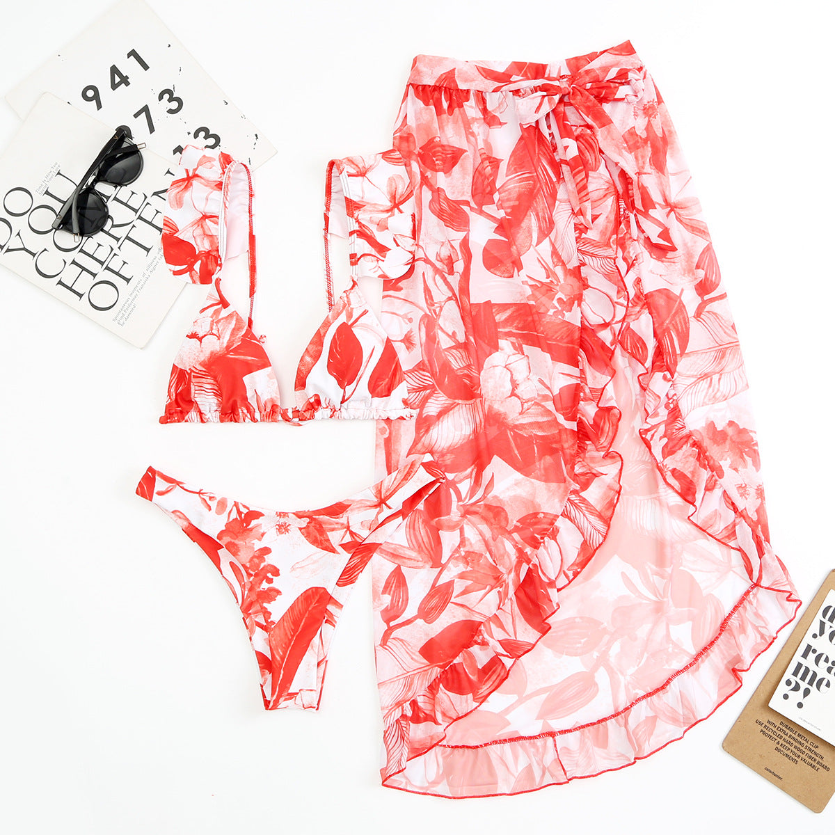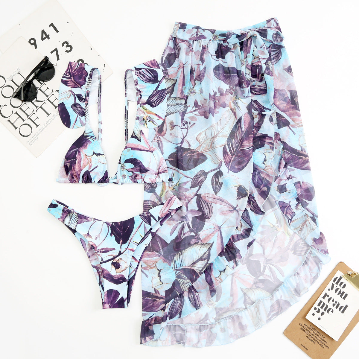 Wholesale Multicolor Double Sided Mesh Polyester Swimwear Three-Piece Set