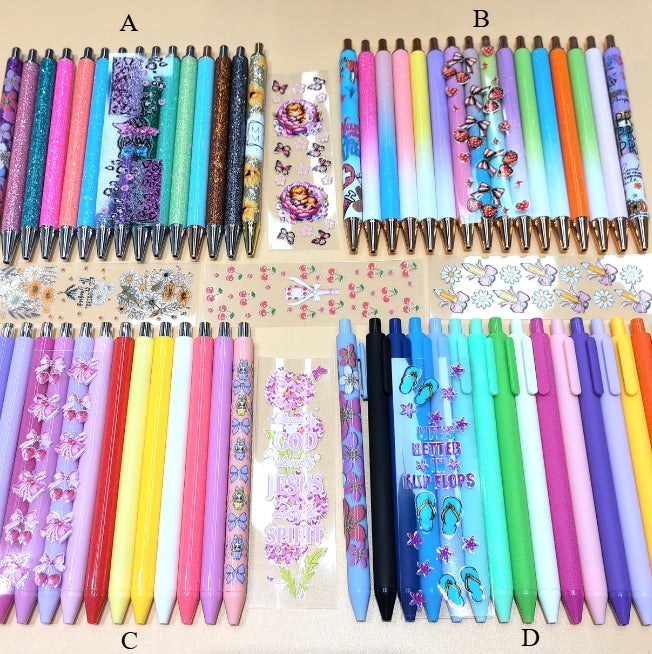 Wholesale Random Stickers 20/50/100pcs UV DTF Wraps & Cartoon Random Styles Pen Stickers for Crafts & Random Color Pen