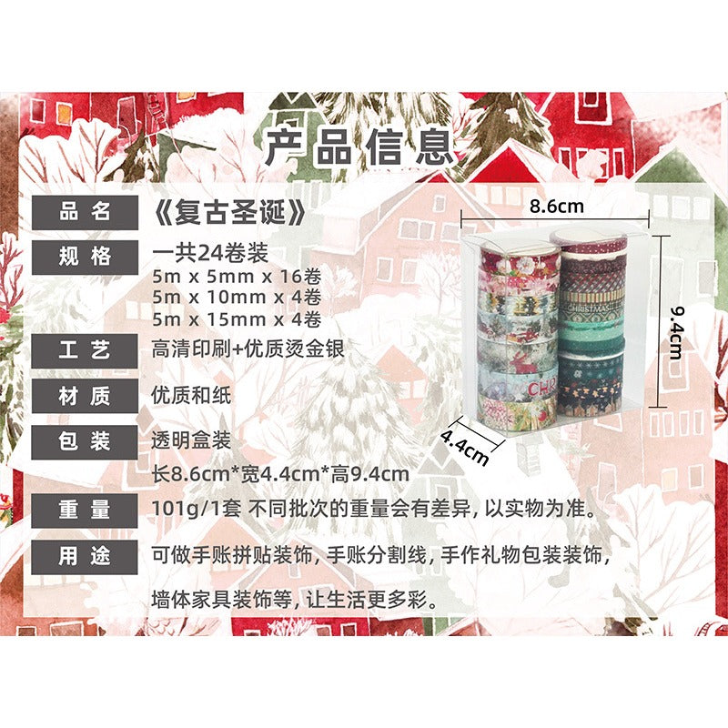 Wholesale Retro Christmas Strips 24 Roll Two Color Hot Pot Gold and Silver Decorative Bookkeeping Tape