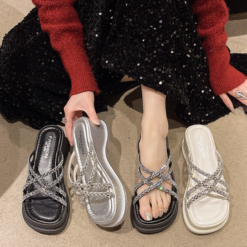 Wholesale Rhinestone Thick-soled Outer Sandals for Women
