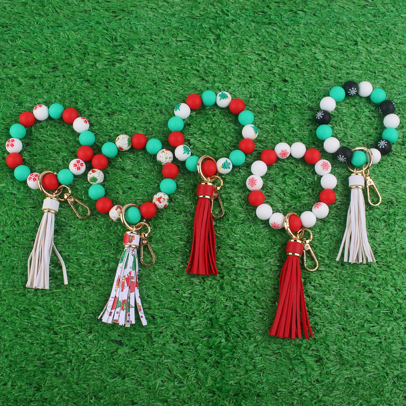 Wholesale Silicone Christmas Leather Tassel Bracelet Keychain