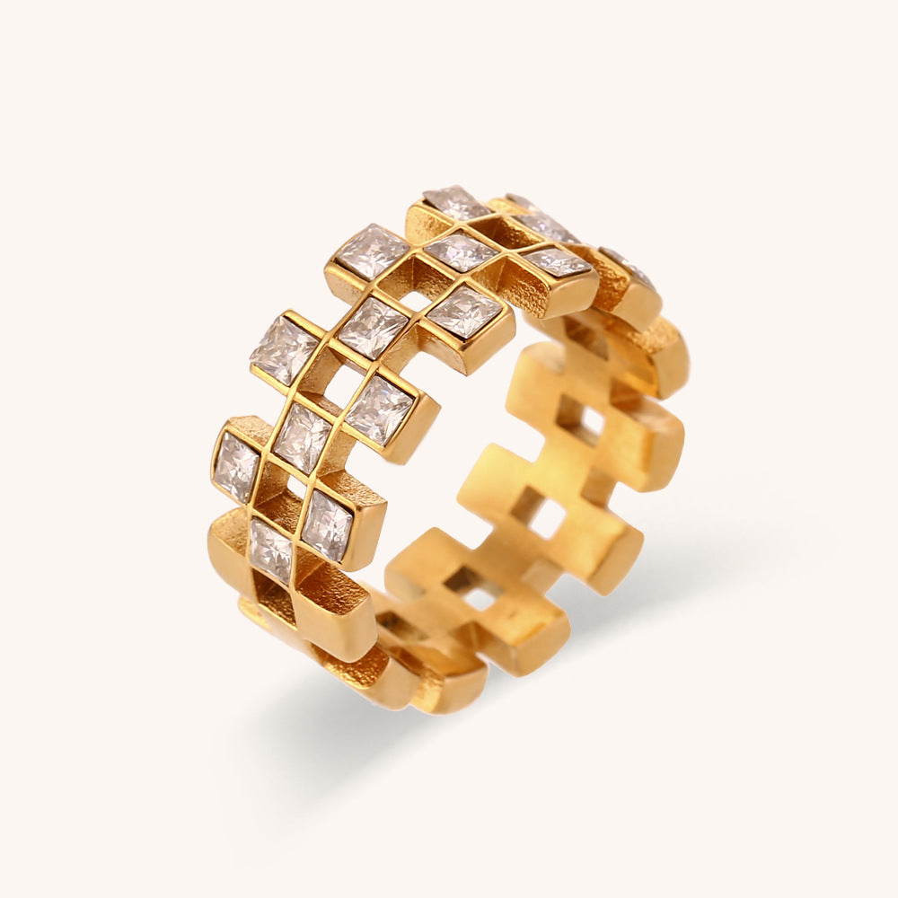 Wholesale Stainless Steel Splicing Hollow Zircon Square Ring