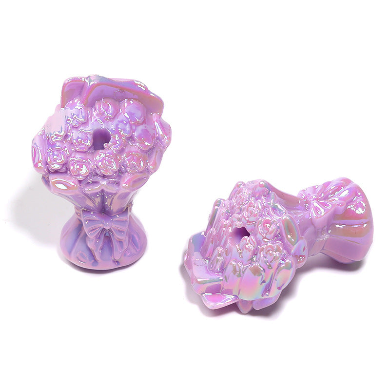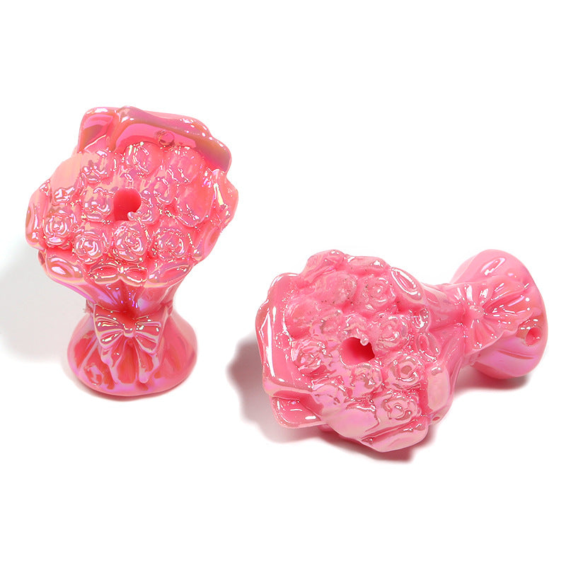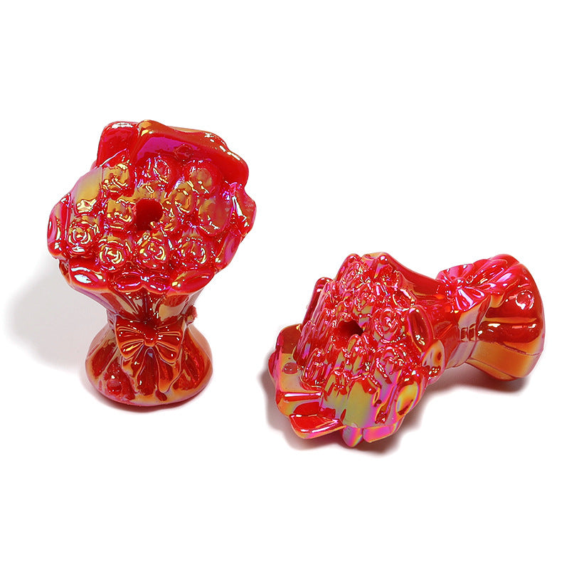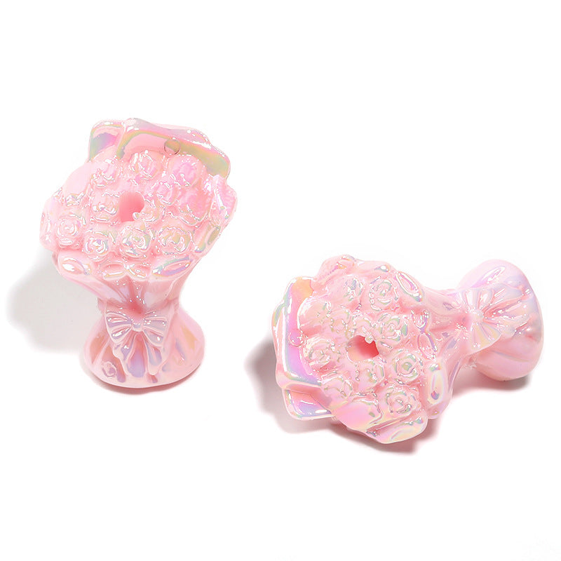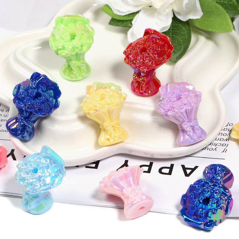 Wholesale 100pcs UV plated color bow hand bouquet vertical hole beaded solid color rose bouquet acrylic beads diy jewelry accessories