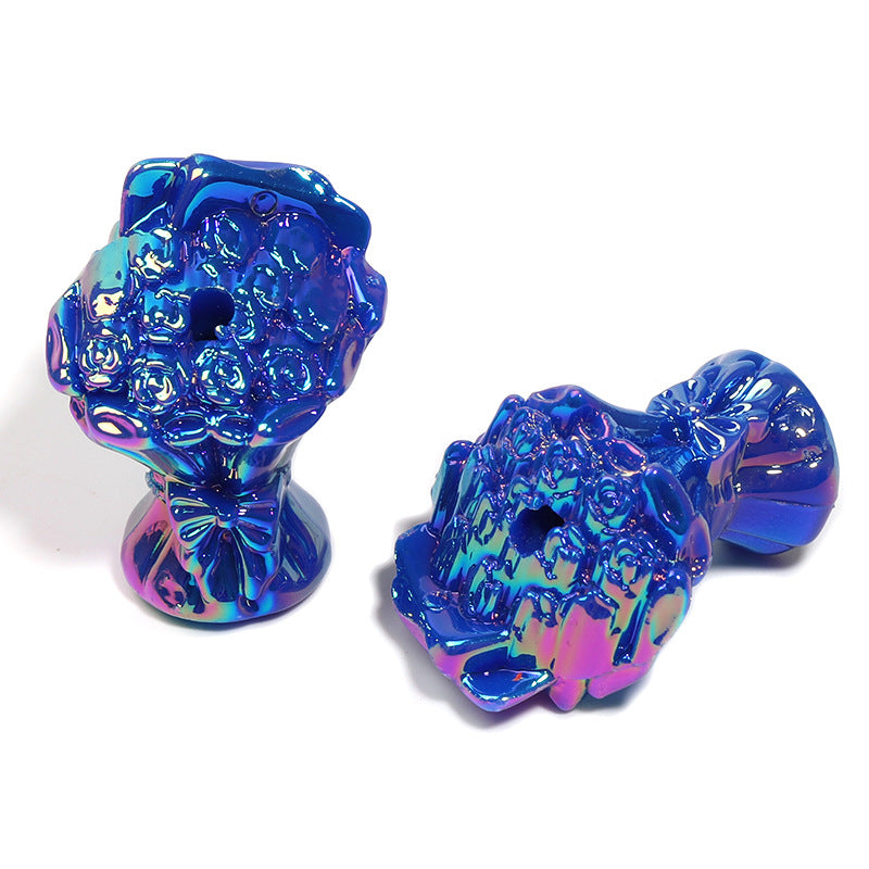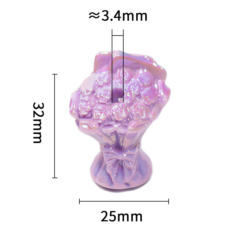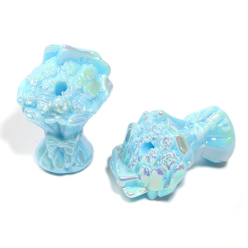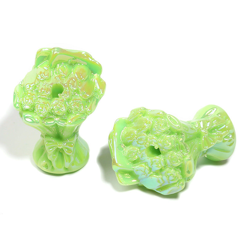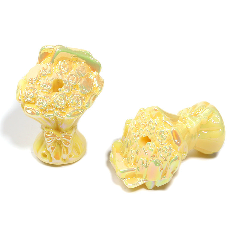 Wholesale 100pcs UV plated color bow hand bouquet vertical hole beaded solid color rose bouquet acrylic beads diy jewelry accessories