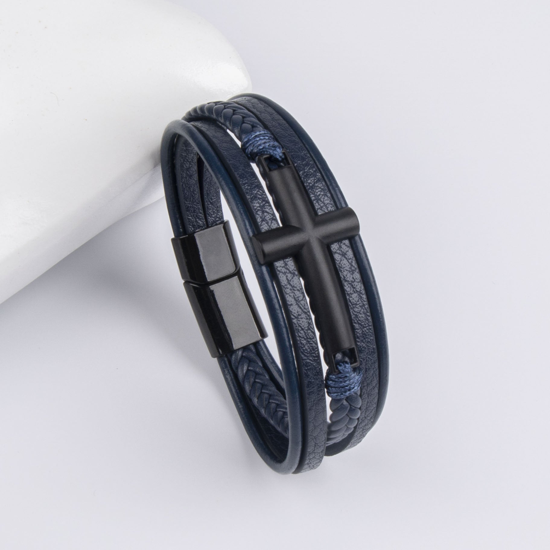 Wholesale Vintage alloy cross accessory magnet buckle leather bracelet