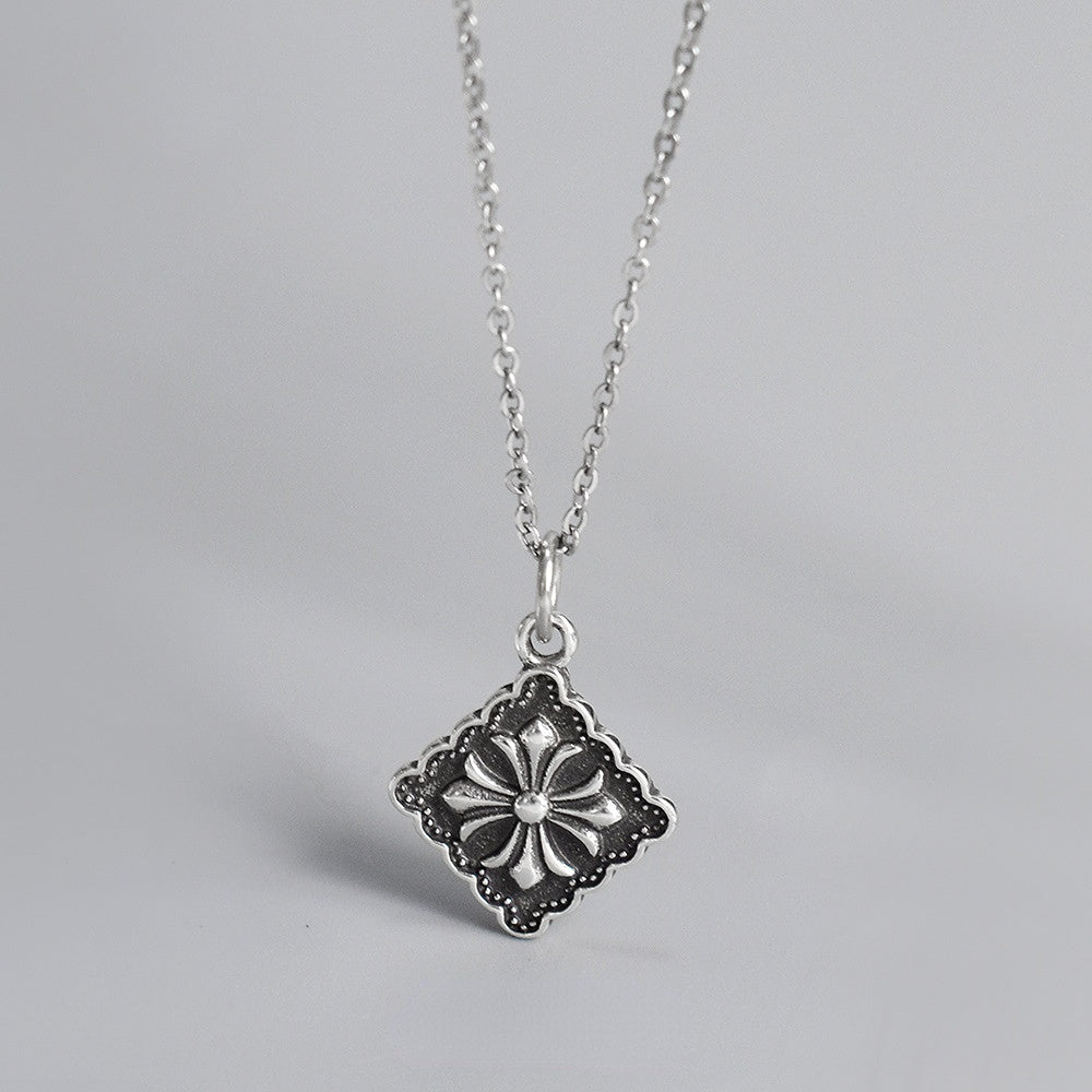 Wholesale Vintage Cross Square 925 Sterling Silver Clavicle Necklace