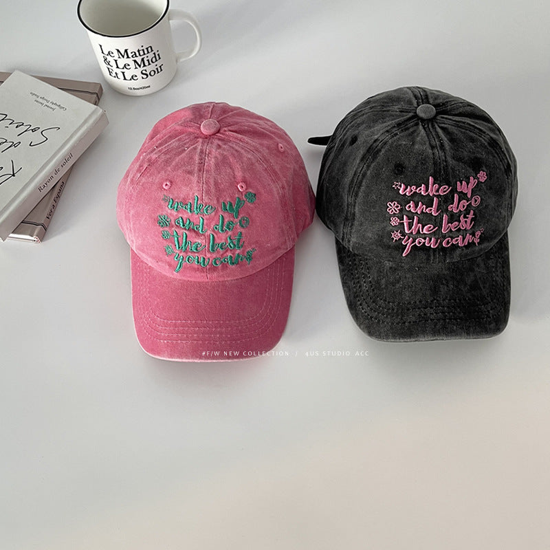 Wholesale Whitewashed Cotton American Retro Letter Vintage Duck Tongue Summer Sunshade Baseball Hat